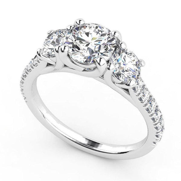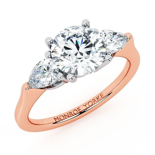 A three stone engagement ring — also known as a trilogy ring — symbolises the past, present, and future of your love story. This deeply meaningful design features a larger centre diamond flanked by two complementary stones, creating a balanced and brilliant composition. Our Melbourne-crafted trilogy rings use GIA or IGI certified diamonds in a variety of shape combinations, from classic round brilliants to elegant pear and emerald cuts. A three stone engagement ring carries both stunning beauty and heartfelt significance.