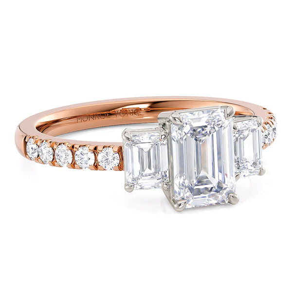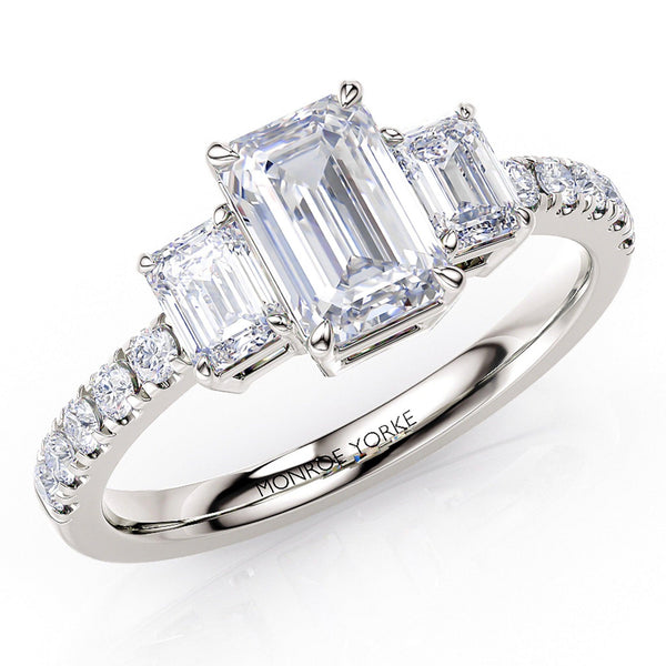 Absolutely — mixing shapes is a wonderful way to create a unique and eye-catching three stone ring. Popular combinations include a round centre with pear-shaped side stones, an emerald centre with trapezoid sides, or an oval centre flanked by round brilliants. The key is choosing shapes that complement each other in proportion and style.