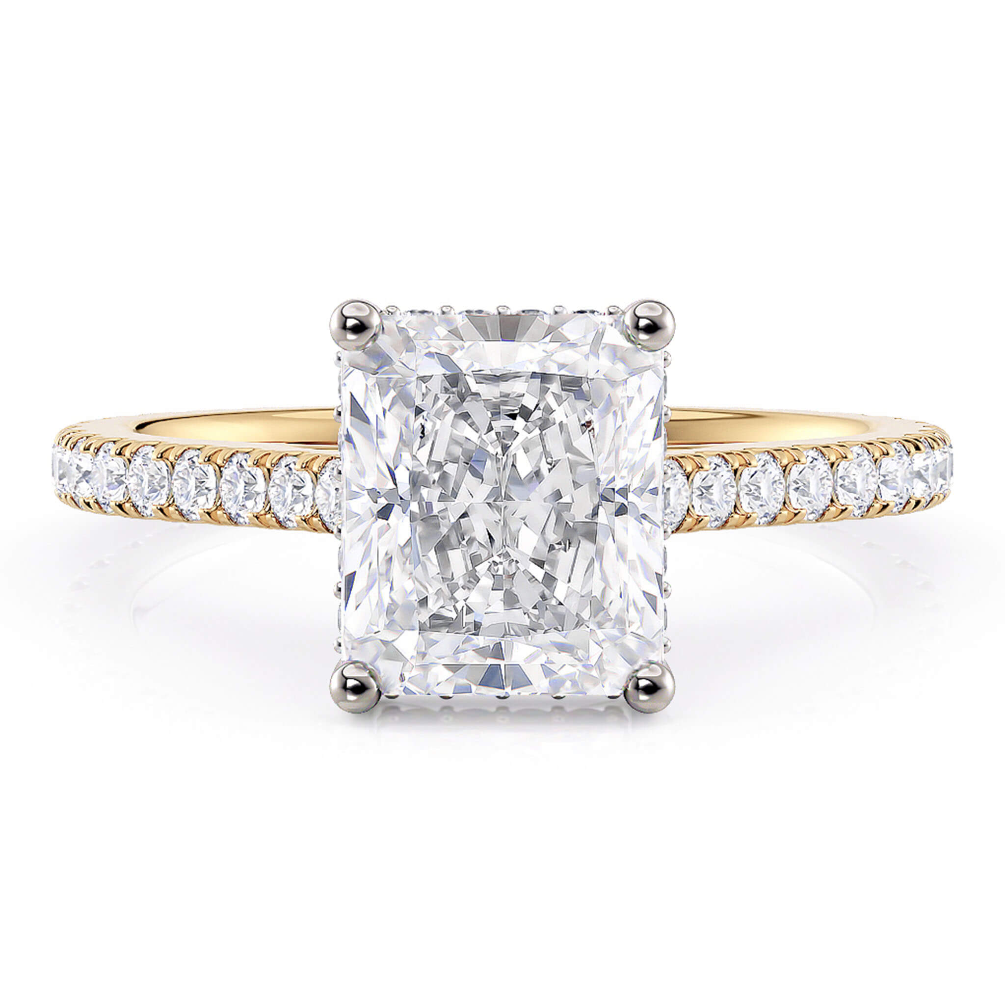 Seville Radiant Cut Diamond Engagement Ring with Hidden Halo – 18ct Yellow Gold