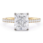 The Seville in 18ct yellow gold is a true statement of refined beauty and brilliance. Featuring a stunning elongated radiant-cut centre diamond, this design captures light from every angle, radiating warmth and sophistication.